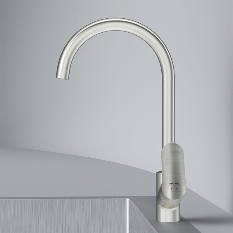 Впервые модный дизайнерский смеситель в доступном сегменте: ультрамодный стиль Dynamic Organic — природные формы в сочетании с четкими линиями, доведенными до совершенства человеком.Максимальный комфорт: плавное вращение поворотного излива в любом направлении обеспечивает непревзойденное удовольствие от использования и удобство в работе на кухне.Эксклюзивная разработка: специально спроектированный для АМ.РМ керамический картридж SoftMotion 35 мм обеспечивает оптимальную регулировку температуры, а также позволяет выдерживать любые перепады давления. Разработан с учетом ваших потребностей и особенностей различных пространств. Высокий излив смесителя Like идеально подойдет для любой раковины поможет вам с легкостью справится с такими задачами, как наполнение больших емкостей.Забота о безопасности: изготовлен из экологичной и безопасной латуни с пониженным содержанием свинца. Надежность на 700%, протестирован на 500 000 циклов включения, что в 7 раз превышает европейские стандарты.
