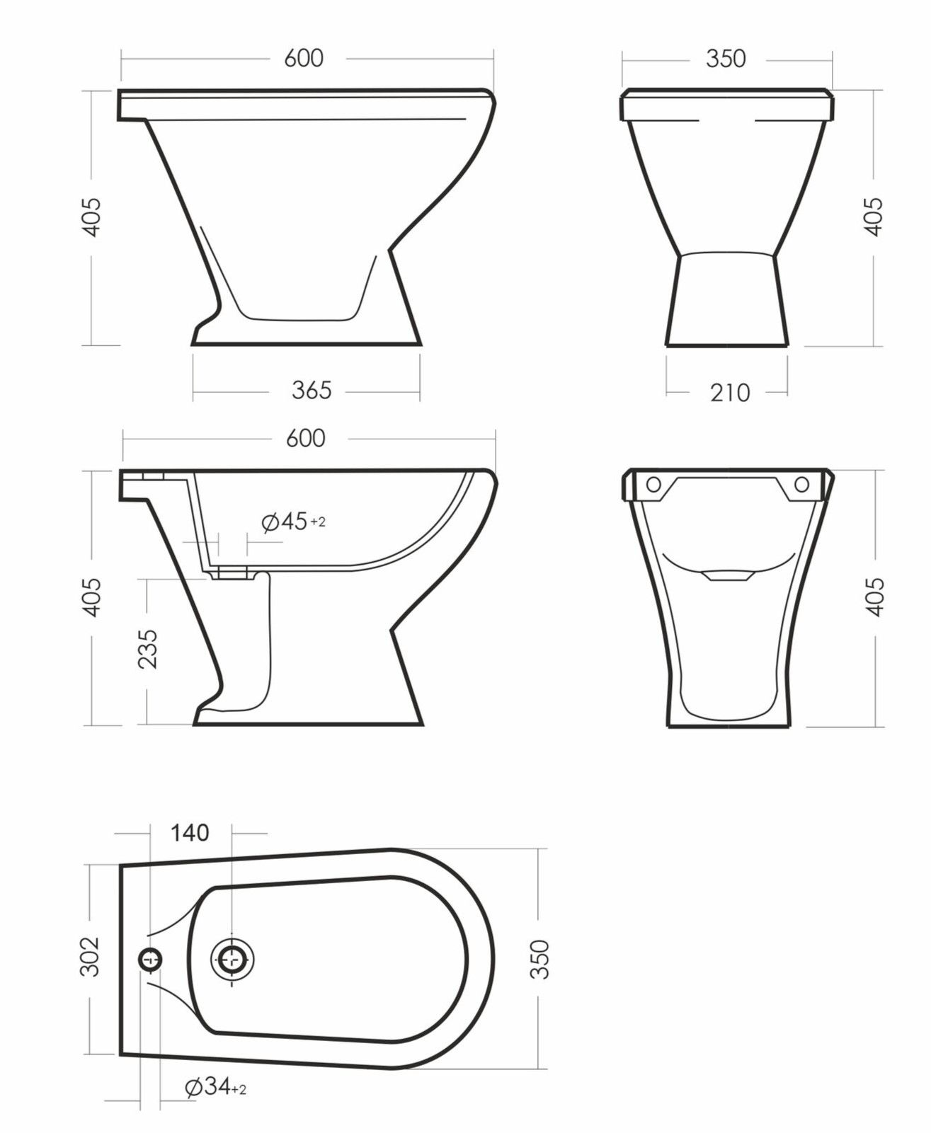 Размеры биде: 260 x 640 x 406