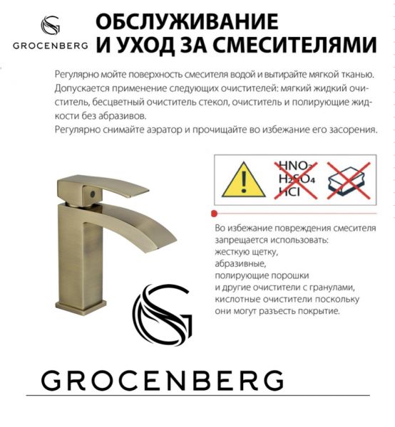 Смеситель для раковины GROCENBERG сочетает в себе современный дизайн и исключительную надежность. Смеситель изготовлен из качественного материала, что делает поверхность смесителя в ванну крепкой и максимально гладкой. Прочный материал обеспечивает долговечность изделия, защищая его от преждевременного износа, сколов и трещин даже при интенсивной эксплуатации. В интернет-магазине Gidro-butik широкий выбор смесителей для раковин.