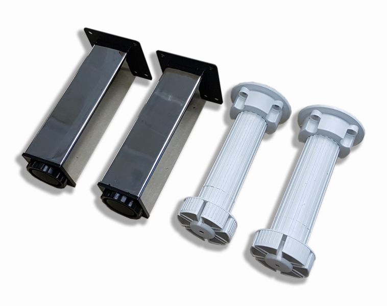 Хромированные ножки регулируются по высоте, передние хромированные, задние пластик. Подходят для пеналов и тумб подвесных/напольных для установки на пол