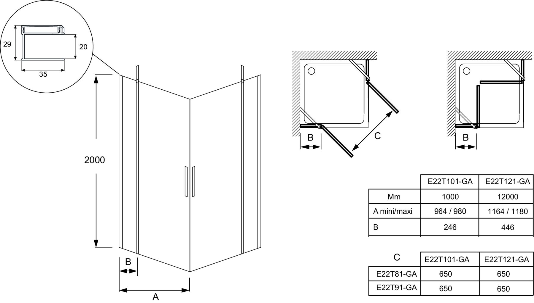 Душевая дверь Jacob Delafon CONTRA E22T101-GA 100*200