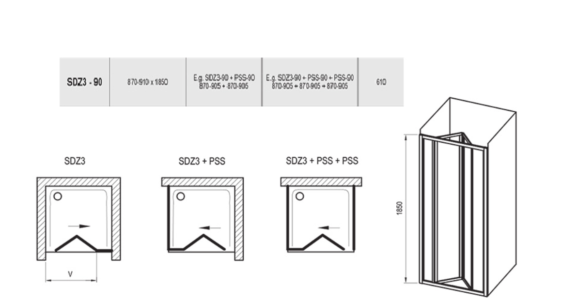 Душевая дверь Ravak Supernova SDZ3-90 02V70100ZG Grape профиль белый купить