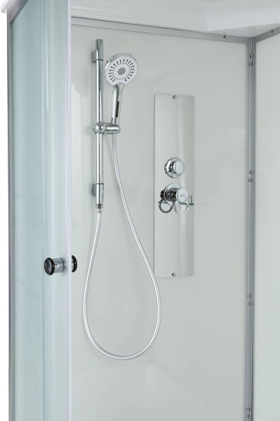 Стильная душевая кабина AvaCan D 5010  сочетает в себе высокую функциональность, практичность и надежность. При изготовлении применяется безопасное закаленное стекло толщиной 4 мм (матовое), надежно фиксируемое алюминиевым профилем. Сборка без силикона (увеличивает срок службы), внутренняя сборка (облегчает установку и ревизию, позволяет установить душевую кабину в ограниченном пространстве),смеситель резьбовой (без хомутов), съемный экран поддона (позволяет осуществлять ревизию сифона), цвет профиля матовый хром. Двойные металлические ролики дверей (увеличивают срок службы).В комплекте : душевая штанга, полочка, тропический (верхний) душ, арома-лейка с витамином С (картридж съемный).