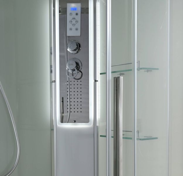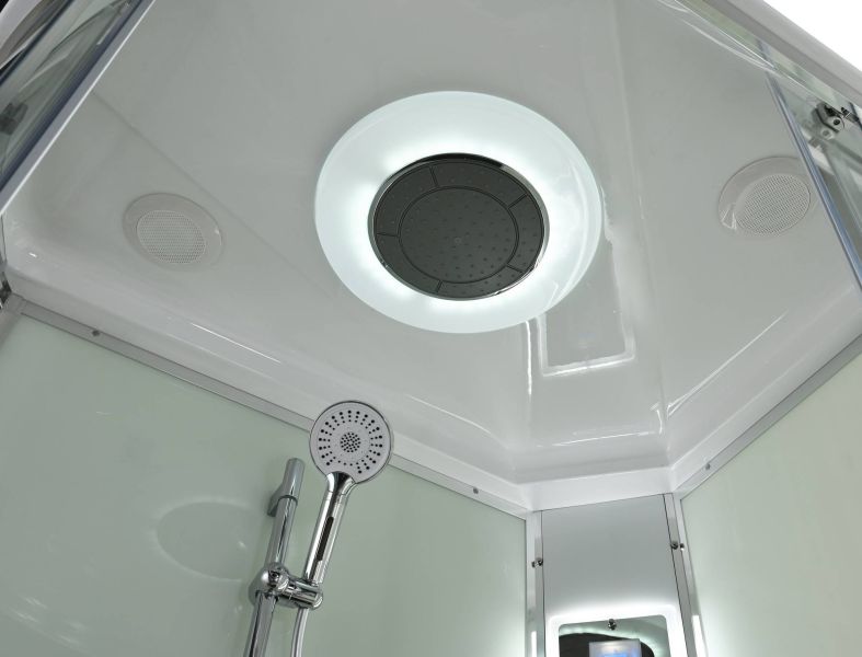 Стильная душевая кабина AvaCan EM2811RLEDT сочетает в себе высокую функциональность, практичность и надежность. При изготовлении применяется безопасное закаленное стекло толщиной 5 мм (прозрачное), надежно фиксируемое алюминиевым профилем. Сборка без силикона (увеличивает срок службы), внутренняя сборка(облегчает установку и ревизию; позволяет установить в ограниченном пространстве), смеситель резьбовой (без хомутов). Съемный экран поддона (позволяет осуществлять ревизию сифона). Цвет профиля хром. Двойные металлические ролики дверей (увеличивают срок службы).В комплекте : душевая штанга, две полочки , тропический (верхний) душ, арома-лейка с витамином С (картридж съемный),полимерная вставка в поддон(имитация дерева),сифон, ручки дверей из нержавейки , двойные ролики ,пульт сенсорный(Блютуз ,LED подсветка ,радио ,вытяжка),гидромассаж спины.