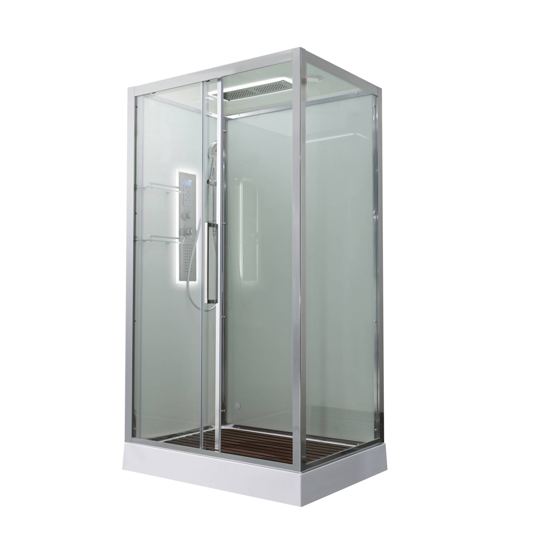 Стильная душевая кабина AvaCan сочетает в себе высокую функциональность, практичность и надежность. При изготовлении применяется безопасное закаленное стекло, надежно фиксируемое алюминиевым профилем.Профиль сделан из алюминия повышенной прочности. Сборка без силикона (увеличивает срок службы, защищает от протечек), внутренняя сборка (облегчает установку и ревизию; позволяет установить в ограниченном пространстве и обойтись без демонтажа других сантехнических приборов), смеситель резьбовой (без хомутов). Двойные металлические ролики дверей (распределение нагрузки на два ролика, увеличивают срок службы). Душевая штанга(позволяет регулировать по высоте ручную лейку), ручная арома-лейка с витамином С (картридж в комплекте,есть возможность замены или удаления картриджа), полочки(из стекла, с ограничителем), сифон с гидрозатвором, сенсорный пульт управления с функциями: блютуз, LED подсветка, радио, вытяжка, гидромассаж спины, тропический (верхний) душ.