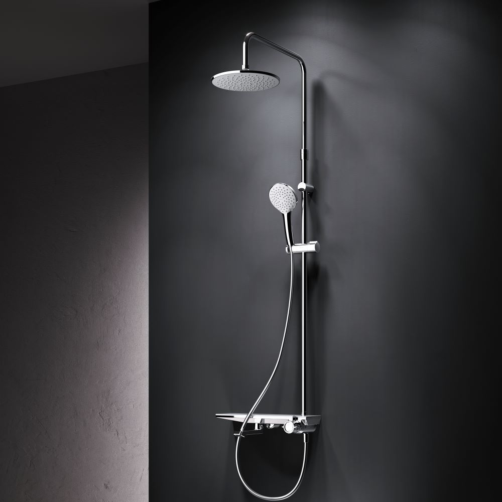 Долгожданное пополнение культовой коллекции Gem — Душевая система с ванно-душевым смесителем-полкой.Все детали душевой системы – от пропорций ручного и верхнего душей до рисунка расположения форсунок на лейках – подчинены единой концепции в ультрамодном стиле Dynamic Organic. Дизайн разработан всемирно известным агентством Brandis (Германия).Еще больше места для хранения: верхняя часть смесителя выполнена в виде вместительной полочки. Теперь все необходимые душевые принадлежности всегда будут под рукой.Уникальная система управления: регулируйте температуру и напор воды и переключайте потоки между смесителем, ручным и верхним душем поворотом всего одной ручки — управление еще никогда не было таким простым и интуитивно понятным.Продуманные детали для максимального удобства использования: телескопическая штанга регулируется по высоте в диапазоне от 1030 до 1460 мм, обеспечивая комфорт для людей любого роста, душевой шланг 1750 мм с защитой от перекручивания, увеличенный верхний душ диаметром 220 мм, ручной душ диаметром 120 мм.