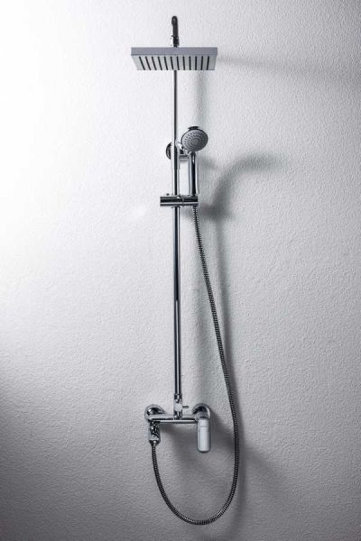 Душевая стойка для ванны Bravat Opal с большим квадратным верхним душем и смесителем. Серия известна не только своим качеством, но и высоким уровнем эргономики.