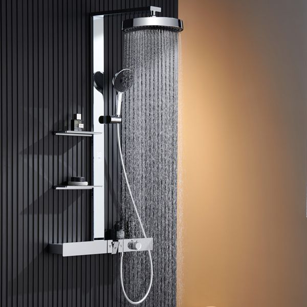 LED дисплей (индикация температуры и времени) на душевой штанге, две полочки из закалённого стекла (237x105 мм).