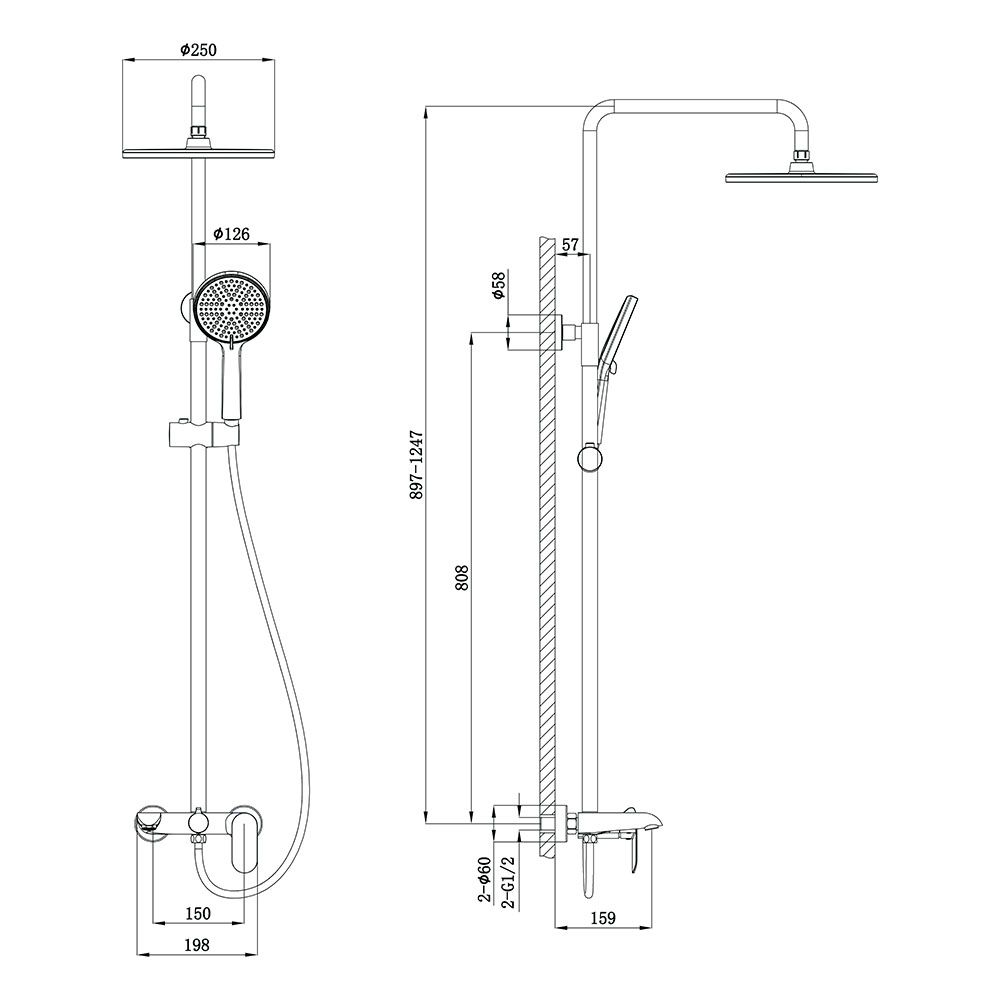 Душевая стойка FERRI, чёрный матовый