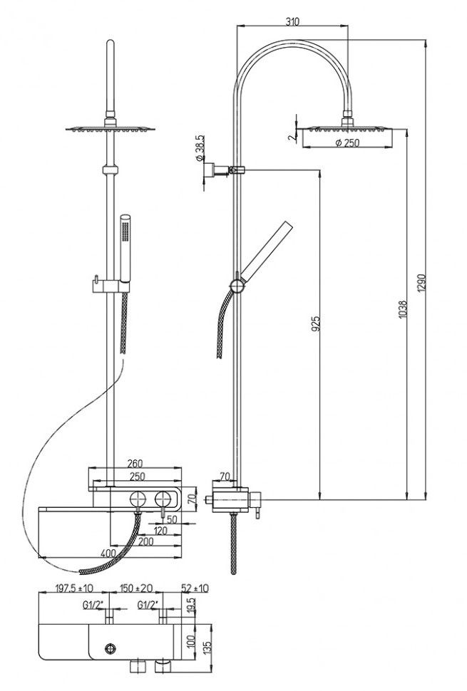 - Размер верхнего душа, см:20