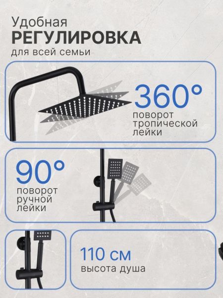 Душевая стойка Vexorus Light B8001.BL чёрный матовый