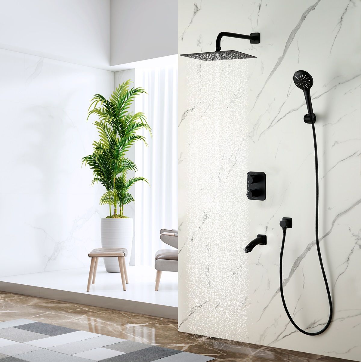 Душевой комплект Lemark Bronx LM3742BL с термостатом чёрный купить