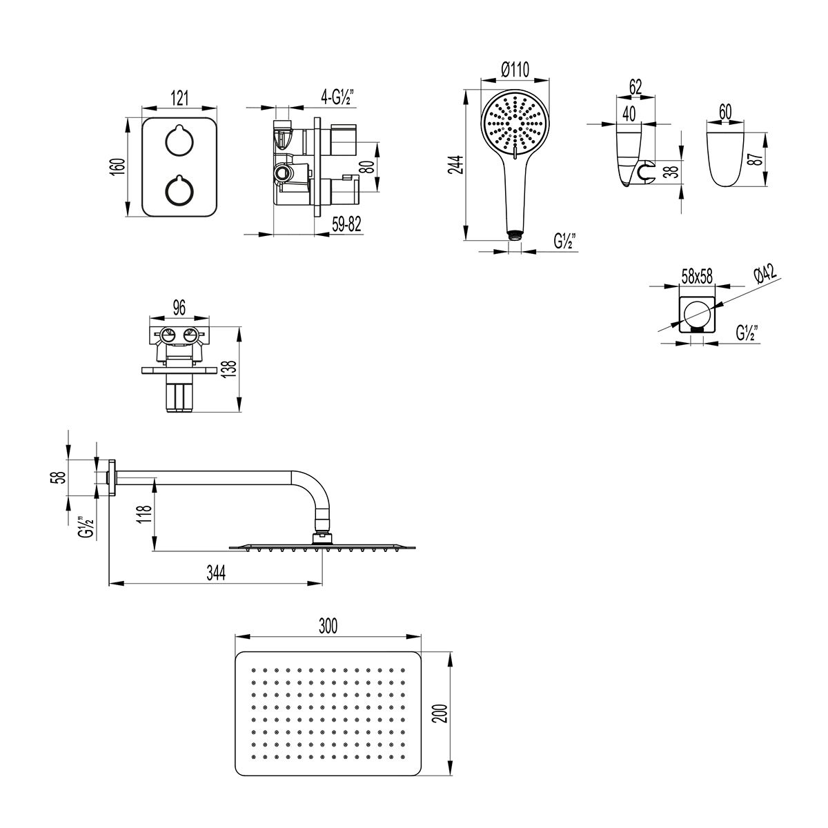 • Держатель верхней душевой лейки 334 мм
