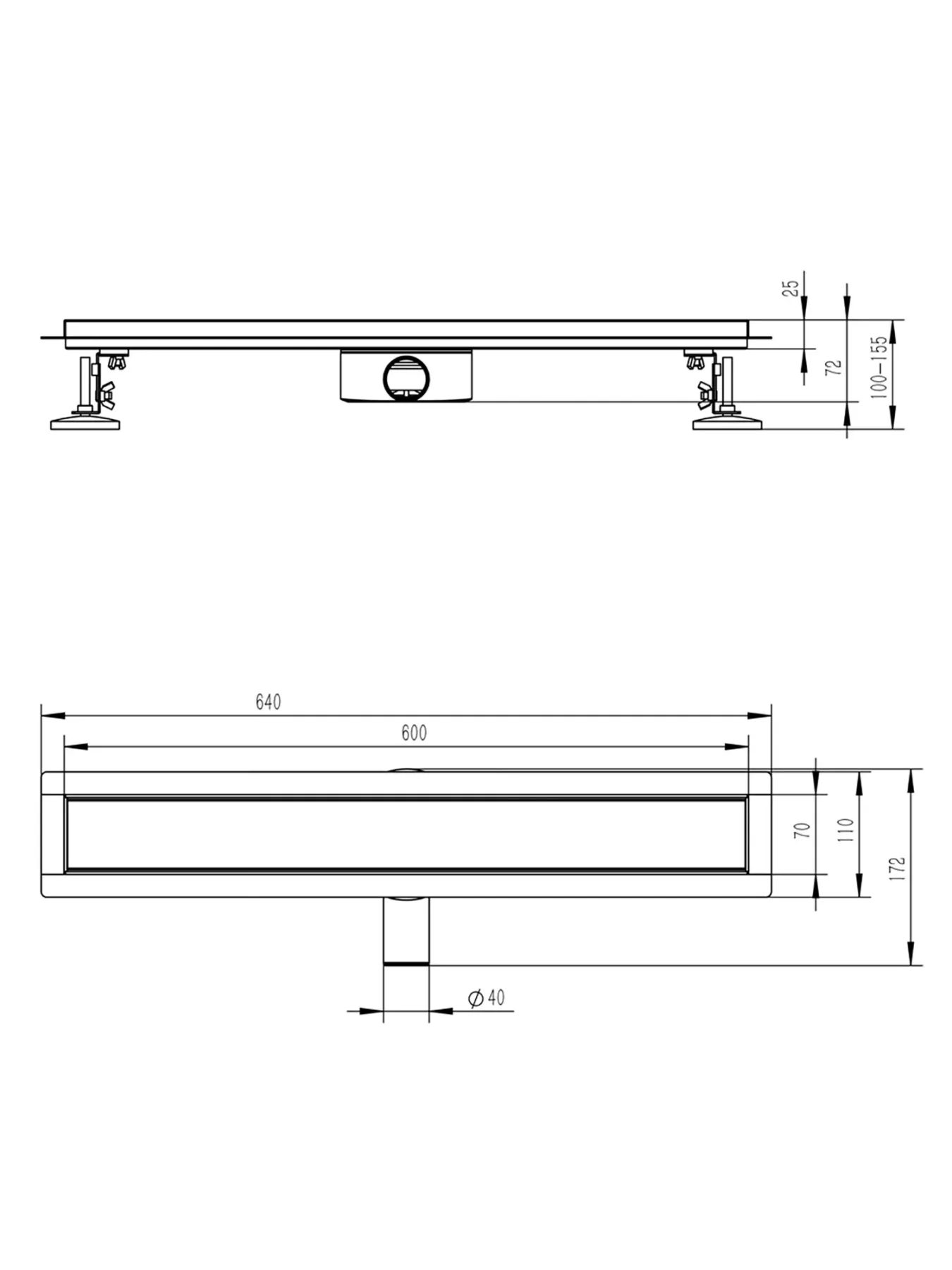 Линейный трап под кладку плитки для душа предназначен для отвода воды с пола или поддона под душем. Широкий диапазон регулировки по высоте позволяет устанавливать трап в новых ванных комнатах. Индивидуально регулируемые ножки обеспечивают беспроблемную установку, даже в тех случаях, когда Вы сталкиваетесь со значительными неровностями в различных частях монтажной поверхности. Трап обеспечивает свободный слив воды в канализационную систему, также собирая мусор, не давая ему засорять сливные каналы. Принцип работы сухого затвора: легкий поплавок диаметром больше сливного отверстия опускается и закрывает трубу в случае высыхания воды. В рабочем положении вода поднимает и удерживает поплавок на одном уровне и система работает, как один из вариантов гидрозатвора. Если трап не используется, то вода из затвора испаряется, а поплавок закрывает сливное отверстие. Выпуск: горизонтальный. Материал корпуса: нержавеющая сталь. Защита от запаха: сухой+гидрозатвор.
