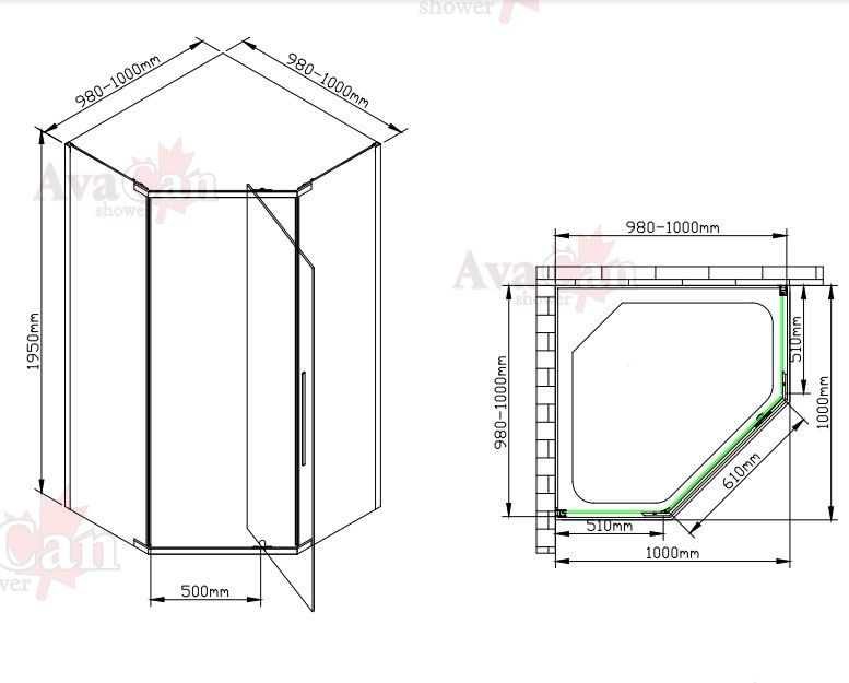 - Душевой уголок AvaCan PC 100 Chrome размер 980-1000-195
