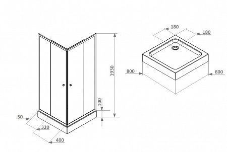 - Поддон белый из ABS-пластика, квадратный, с бортиком по периметру;