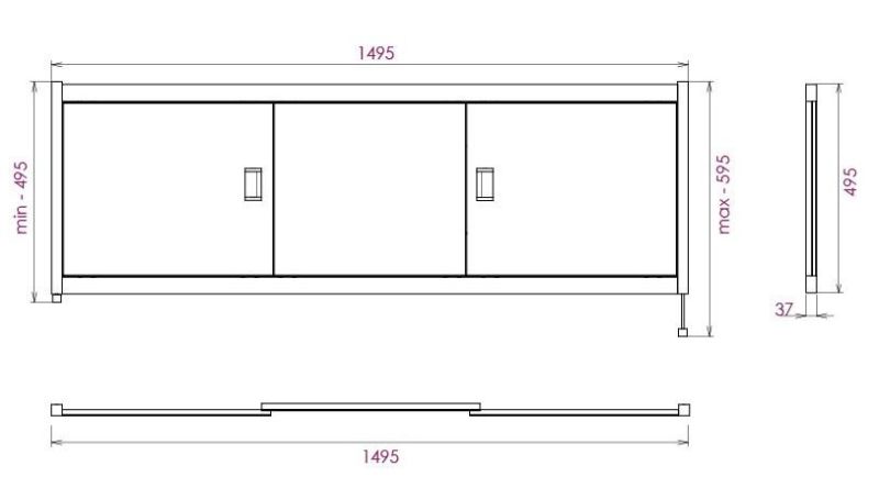 Ножки позволяют регулировать экран по высоте от 52 до 60 см, благодаря этому экран является универсальным и впишется в интерьер любой ванной комнаты.