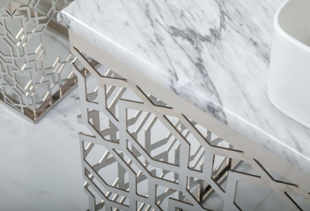 Консоль с раковиной Aura шириной 110 см цветом хромКонсоли произведены из нержавеющей стали благодаря чему стойки к коррозии. Гальваническое покрытие исполнено в цветах хром и золото. Можно выбрать столешницу из мрамора, хрустального каленого стекла в различных цветовых исполнениях, и Solid Glass (передовой материал, в состав которого входит мраморная крошка и стекло). Раковины-чаши выполнены из Corian, которыми можно дополнть консоли, хрустального стекла, керамики. Хорошим дополнением к консолям являются пеналы ArmadiArt, а также сифоны, клик-клаки и смесители Boheme.Мебель можно дополнить пеналом и зеркалом