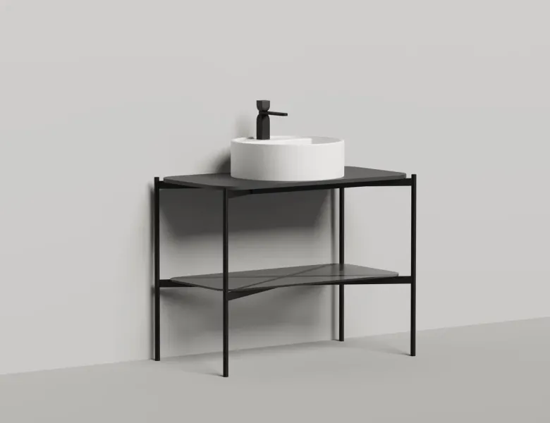 Консоль, предназначенная для установки накладных раковин из ассортимента Salini, изготовлена из металла, выполнена в благородном матовом чёрном цвете.