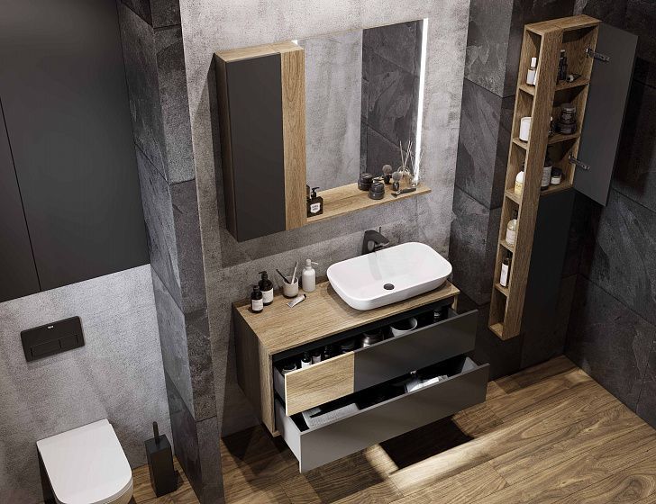 Шкаф Акватон Терра 35 дуб кантри/антрацит не только несравненное украшение для ванной комнаты, но и замечательное функциональное решение любого санузла.Компания Акватон использует при производстве высококачественные водоотталкивающие материалы (ДСП), соответствующие всем необходимым требованиям безопасности. Коллекция Терра выполнена в эксклюзивном дизайнерском решении в лучших традициях современного стиля. Серый, основной цвет исполнения Акватон Терра, безупречно впишется в любой дизайн проект. Шкаф предусматривает удобную и вместительную систему хранения, состоящую из полочек с системой нажимного открывания. Важные размеры товара: ширина 35 см, глубина 14 см, высота 85 см.Россия родина бренда Акватон, вся продукция производится со строгим соблюдением всех стандартов, благодаря чему можно быть абсолютно уверенным в надежности и высоком качестве. Шкаф Акватон Терра 35 дуб кантри/антрацит это абсолютный комфорт в современной ванной комнате.