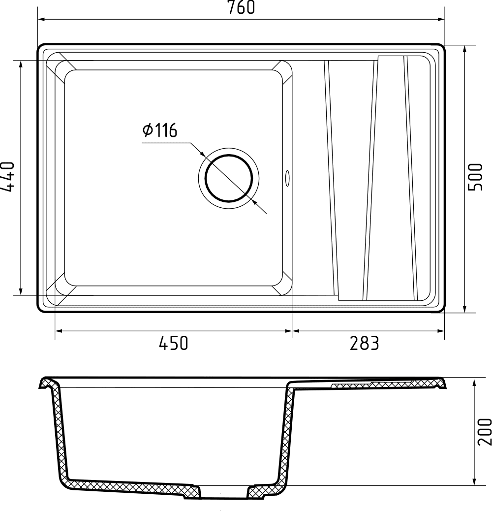 Мойка кухонная GranFest LEVEL LV-760L графит
