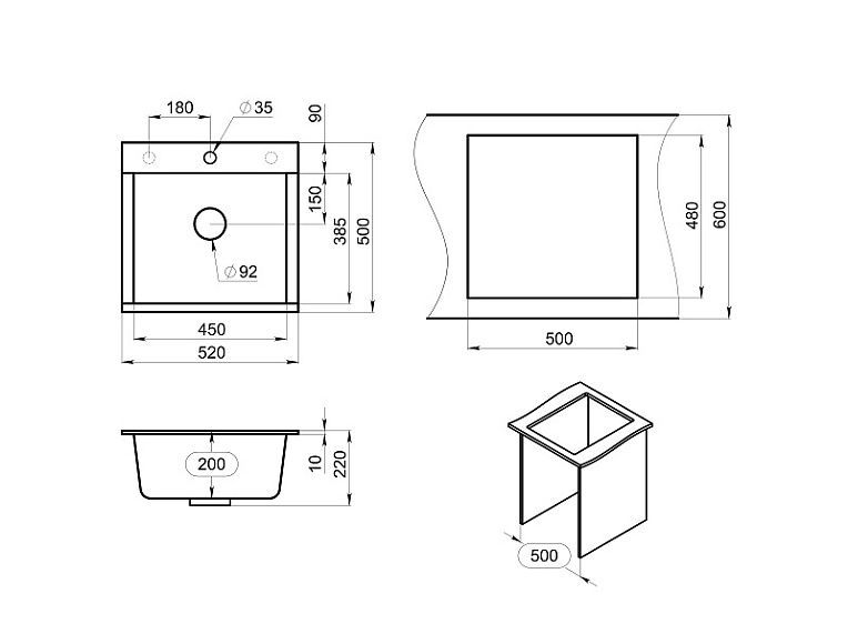Мойка кухонная Granula 5201, ЧЁРНЫЙ