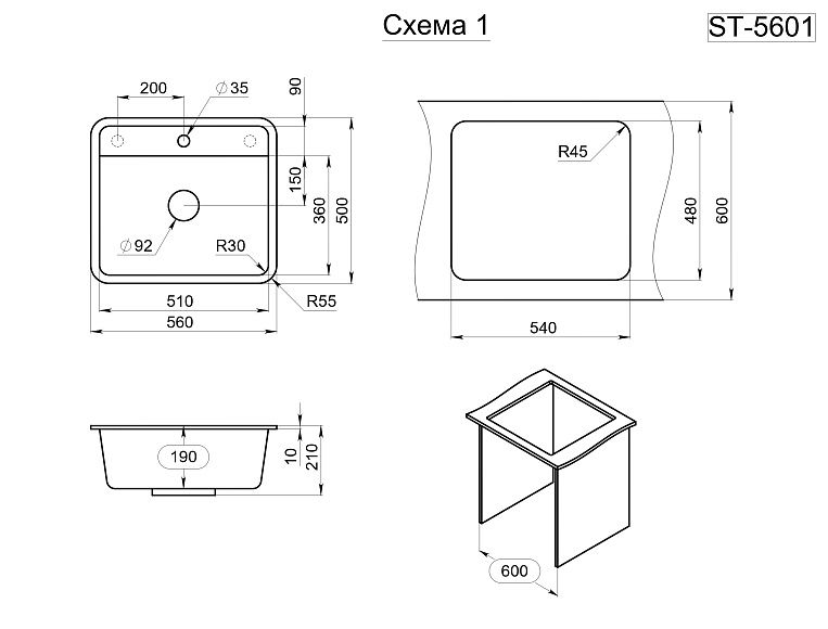 Мойка кухонная Granula 5601, БАЗАЛЬТ