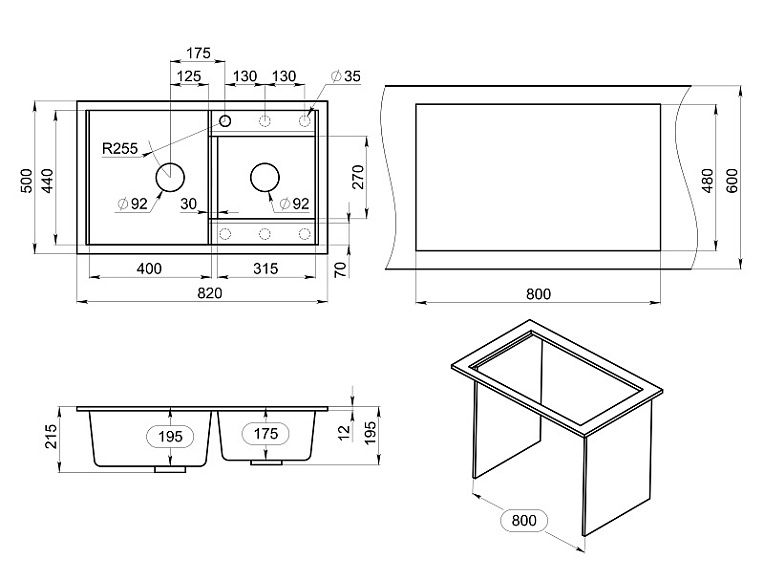 Габариты дополнительной чаши, мм