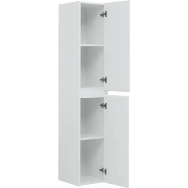 Шкаф-пенал для ванной Aquanet Nova Lite белоснежного цвета из влагостойкой ламинированной древесно-стружечной плиты выглядит нарядно. При ширине всего 35 см в нем, тем не менее, поместятся полотенца, банные халаты или дополнительные пеномоющие средства, для которых найдется место на четырех полочках, скрытых от посторонних глаз за двумя дверцами, оборудованными петлями с доводчиками. Пенал универсальный. В базовой комплектации он предусматривает открывание в правую сторону, но при необходимости фасады можно перевесить для левого открывания.можно заказать дополнительно.