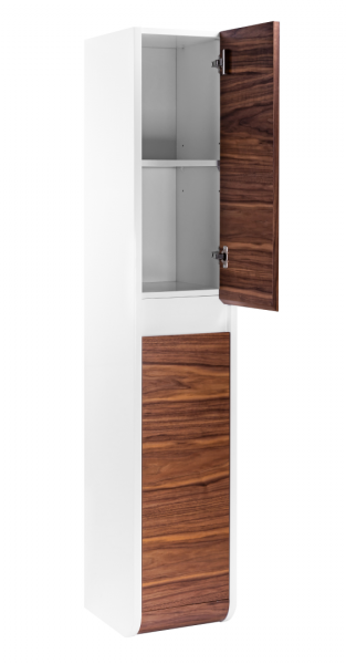 Серия VISION: Модульная система с натуральным шпоном Базовые элементы системы - Напольные пеналы (для бокового монтажа) - Арт. VSN000P-L (Левый): 310 ? 1600 ? 346 мм - Арт. VSN000P-R (Правый): 310 ? 1600 ? 346 мм ----------------------Ключевые характеристики Параметр Значение Конструкция Модульная (комбинируется тумба + пеналы) Корпус Влагостойкий МДФ с эмалевым покрытием Фасад Натуральный шпон лиственных пород Тип установки Подвесной (тумбы), напольный (пеналы) Система хранения 1 выдвижной ящик (в тумбе) + пеналы с полками Толщина МДФ До 20 мм (усиленная прочность) Нагрузка ящика До 40 кг (специальная фурнитура) Поверхность Полуматовая с текстурой древесины Цвета • Фасад: Дуб (натуральный шпон)• Корпус: Белый Фурнитура Полностью выдвижные ящики, регулируемые системы ----------------------Преимущества серии - Высокие пеналы (160 см) для хранения вертикальных предметов.? Гигиеничность: Подвесной монтаж тумб облегчает уборку.