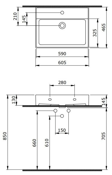 - Отверстия под смеситель:1