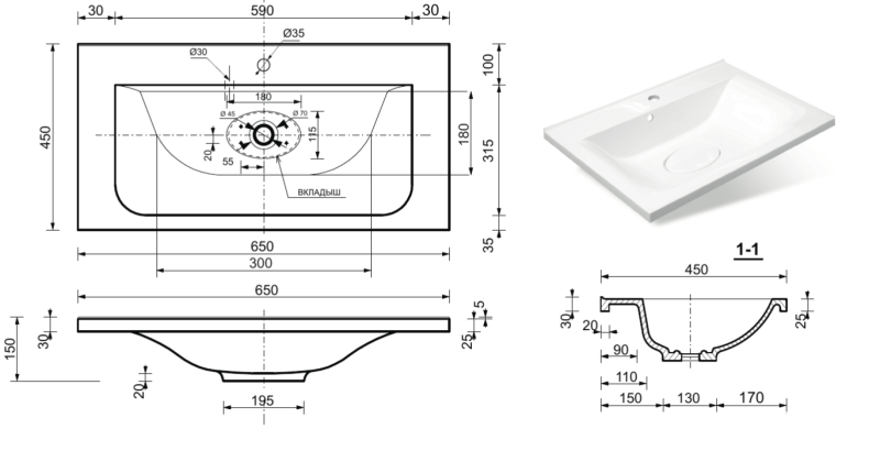 - Тип:раковина на тумбу