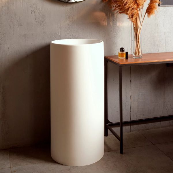 Раковина из искусственного камня для ванной комнаты. Похожие модели – Montebianco Pisa Cono и Pisa Rubinetto. Модель напольного размещения. Не требует сложных манипуляций при инсталляции, устанавливается обособленно от предметов мебели. Благодаря большой видимой площади белоснежно-матовой, бархатистой поверхности великолепно выглядит в интерьере, является самостоятельной композицией. Часто устанавливается в сан.узлах ресторанов и баров, а также частных домах с ванными комнатами большой площади. Высота раковины оптимальна как для высоких людей, так и небольшого роста, в том числе детей. Крепление смесителя либо к стене, либо напольное, на ножке, подчеркивает современный дизайн и технологичность конструкции. Материал не впитывает влагу, не порист, непроницаем для плесени, бактерий и грибков. Отличия от моделей Pisa Cono и Pisa Rubinetto – в размерах (две другие имеют чашу бОльшего размера), форме (Pisa Cono – конической формы) и месте размещения смесителя (в Pisa Rubinetto он устанавливается на поверхность раковины).