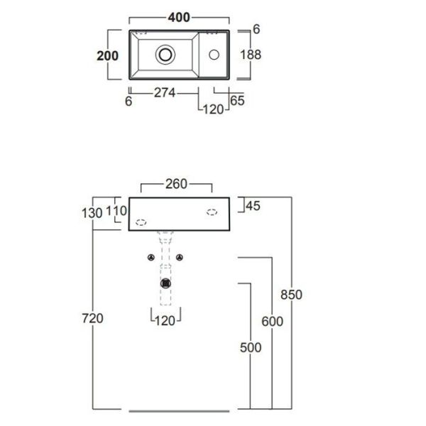 - Отверстия под смеситель:1