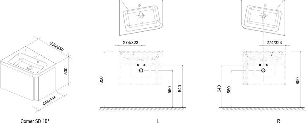 Ravak Тумба под умывальник SD 10° 650 L серая купить