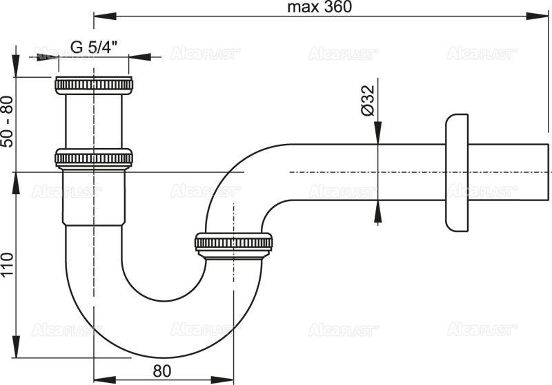 Сифон для биде AlcaPlast ?32 металлический A45E