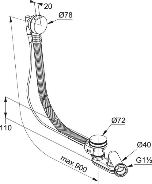 - с гибкой переливной трубой 950 мм
