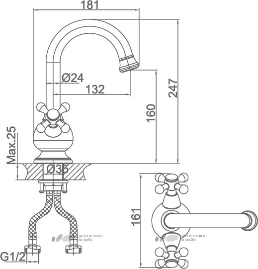 - Высота смесителя:10.6