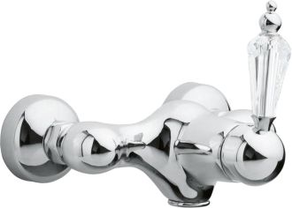 Смеситель Boheme Brillante Ripresa 344 для душа важнейший предмет сантехники в любой ванной комнате. Смеситель Boheme Brillante с легкостью можно установить на любую душевую. Однорычажные смесители – это простота и удобства эксплуатации, так как настройка напора и температуры воды производится при помощи регулировки одного рычага.Латунь, кристаллы Swarovski из которой произведен смеситель Boheme Brillante 344 отличается высокой прочностью и произведена без использования вредных компонентов. Конструкция модели Boheme Brillante позволяет бесподобно установить смеситель на стену. Смеситель для душа Boheme 344 выполнен в стиле ретро, что великолепно прослеживается в его форме. Марка Boheme, родиной которой, является Италия, создает смесители качества с высокотехнологичного оборудования, благодаря чему смесители отличаются долговечностью и надежностью. Смеситель Boheme Brillante Ripresa 344 для душа принесет комфорт, как в компактную ванную комнату, так и в большой санузел.