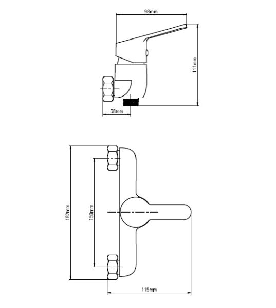 Смеситель для душа: керамический картридж, выход душа 1/2, эксцентрики, металлические декоративные чашки в комплекте.