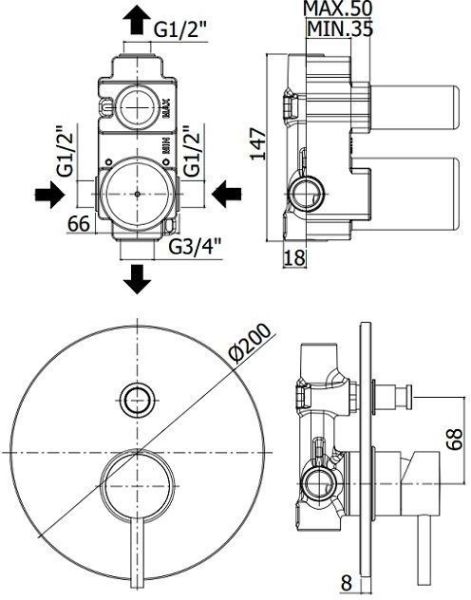 Смеситель встраиваемый для душа на 2 выход с накладкой из металла диам.200мм, девиатор-кнопка, ХромСмеситель для душа Paffoni Light LIG015CR (с внутренней частью) предназначен для душа. Своим модернистским дизайном и цветом он внесет в интерьер помещения стильный акцент, подчеркнув его своеобразие. Он выполнен из надежного материала латунь, который не окисляется, а потому прослужит верой и правдой. Изделие является отличным примером сочетания высокого качества и привлекательной цены. Управление в смесителе предусмотрено однорычажное, что порадует любителей такого типа смесителей. Высокую работоспособность и долговечность смесителю гарантирует керамический картридж, безусловным плюсом которого является беспроигрышная конструкция - залог четкой работы в течение длительного времени. Не зря гарантия на смеситель – 5 лет, в течение которого компания Paffoni заверяет в его бесперебойной работе. Форма излива в смесителе - нет, а тип - нет. При покупке учтите, что подводка у смесителя жесткая, что требуется знать для его установки.