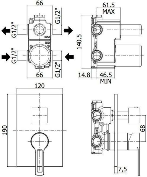 Комплектация:Смеситель на 2 выхода с накладкой из нержавеющей стали, 2 положения + 1 комбо