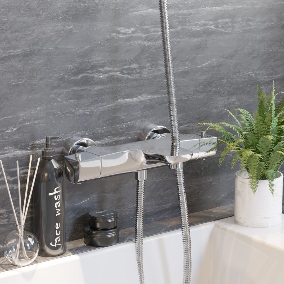 Авторская коллекция итальянского дизайнера Mirko Bosio - NOVE. Смеситель для ванны с термостатом выполнен в акцентной геометрической форме, что можно отнести как к нестандартному конструктивному решению, так и к элементу шика. Термостат позволяет устанавливать нужную температуру и не зависеть от перепадов давления воды.Дизайн смесителя поддержит скандинавский стиль оформления ванной комнаты или любое иное, выбранное вами, направление минимализма.