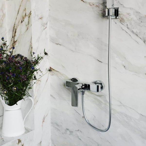 Акцентная геометрия и непревзойденное качество – все это сочетается в авторской коллекции итальянского дизайнера Mirko Bosio - NOVE. Однорычажный смеситель для душа выполнен в оригинальной форме, что можно отнести как к нестандартному конструктивному решению, так и к элементу шика. Широкая ручка рычага сочетается с квадратным корпусом.Дизайн смесителя поддержит скандинавский стиль оформления ванной комнаты или любое иное, выбранное вами, направление минимализма.Рекомендации по интерьерным решениям со смесителями NOVEАвторская коллекция смесителей NOVE итальянского дизайнера Mirko Bosio поможет расставить яркие акценты в интерьере. Что вы выберете: геометричные прямоугольные или подчеркнуто плавные формы? Или компактное удобство встраиваемых моделей?NOVE – это тот динамичный штрих в вашем интерьере, который сделает дизайн завершенным. Минималистичный прямоугольный корпус, нестандартные цветовые решения и легендарное качество создают этот образ.Роскошь покрытия цвета брашированного золота, блеск чистого хрома, а может классика черно-белого исполнения? Матовое благородное покрытие создает ощущение «плотности» и насыщенности цвета при любом выборе, а глянец играет бликами.Смесители в цветах брашированного золота, черного глянца и матового черного прослужат гораздо дольше, так как покрытие выполнено в технике PVD. А PVD это вакуумное нанесение частиц металла на поверхность, за счет чего покрытие получается невероятно прочным и устойчивым к любому виду воздействий. Безусловно, эти формы превосходно вписываются в скандинавский интерьер или стиль фьюжн, не перегружая деталями. Обратите внимание, насколько гармонично в NOVE сочетается лаконичность и яркость форм и цвета. Это позволяет использовать коллекцию в качестве яркого штриха в стилях лофт, минимализм, ар-деко.
