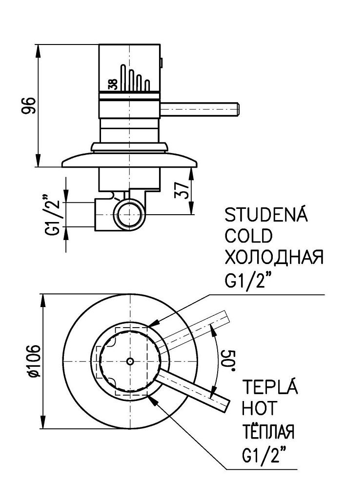 Смеситель для душа Rav Slezak Dunaj Termostat DT283 хром
