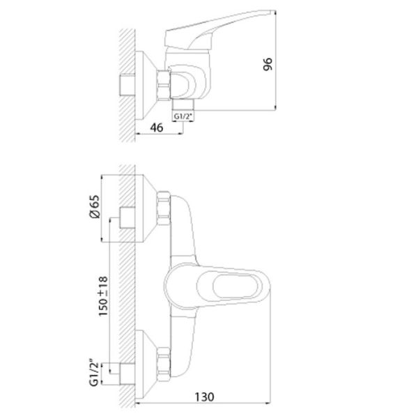 Смеситель Rossinka B35-41 для душа. Керамический картридж 35 мм, аксессуары в комплекте (шланг 1,5 м, настенное крепление, 1-функциональная лейка с функцией легкой очистки) Присоединительная группа (эксцентрики с отражателями) для вертикального крепления