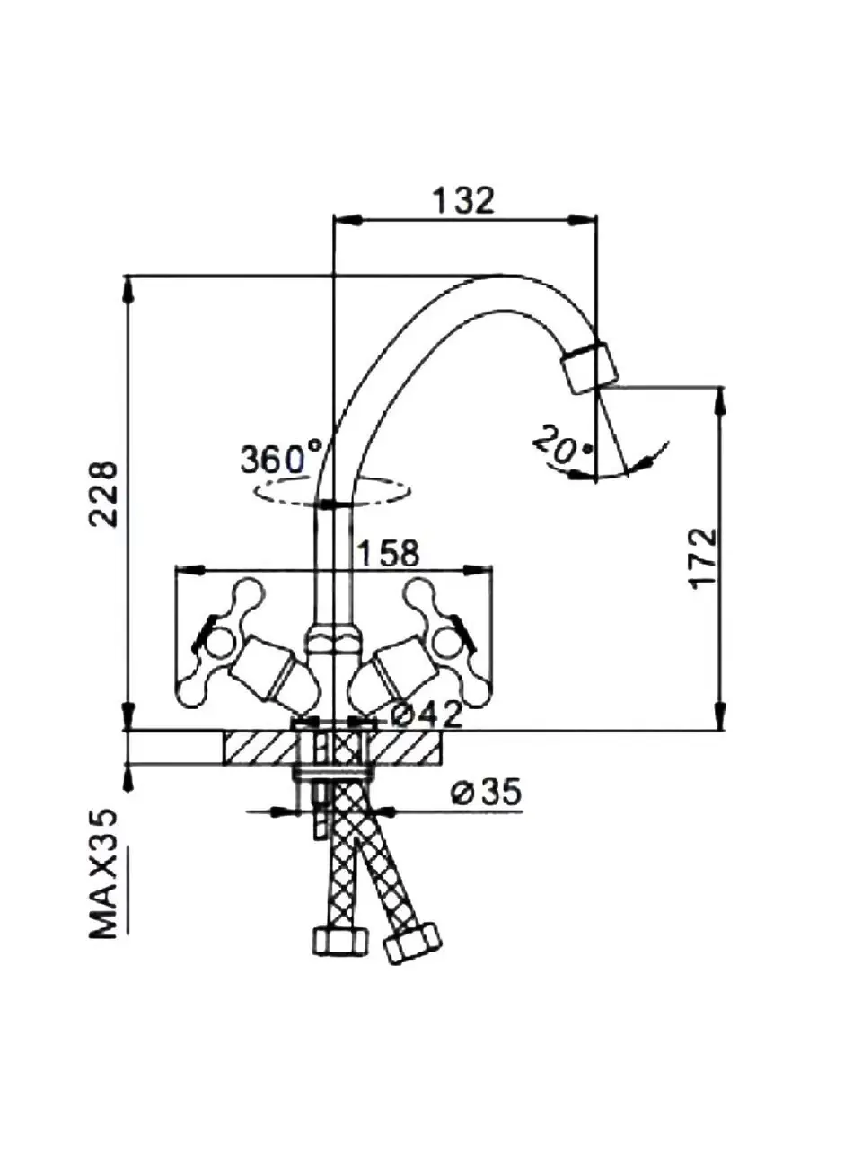 - Высота смесителя:22.8