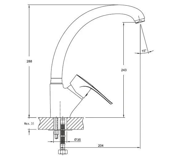 - Высота смесителя:28.8