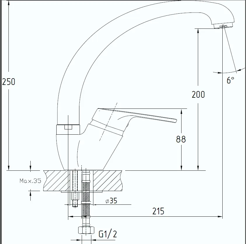 - Высота смесителя:25
