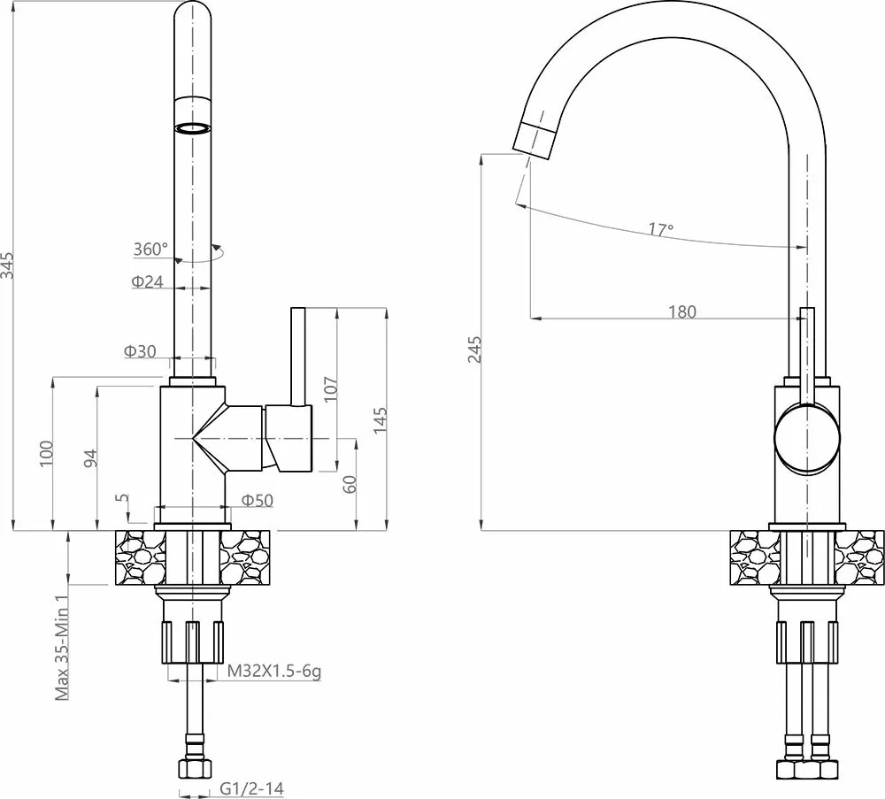 - Высота смесителя:34.5